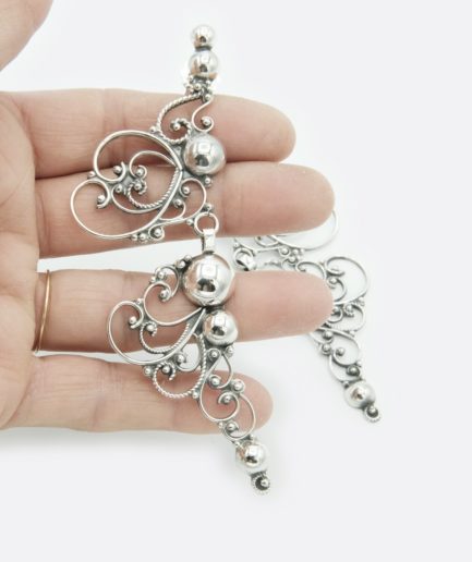 . Pendientes filigrana, péndulo. Plata trabajada a mano